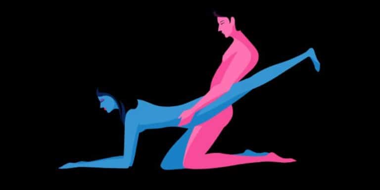Una versión un poco más… salvaje, digámoslo así, es practicarla de pie. ¡¿Cómo?! Sí, por ejemplo, imagínate en ese kiki apasionado en el servicio de una discoteca (si no lo has hecho, seguro que conoces a alguien que sí): quien penetra tendría que poner sus rodillas contra la pared, y tú acoplarte a la postura que ves en la ilustración, pero en vertical. ¿Te parece incómoda? Simplemente, prueba en la cama, sobre colchón, y verás cómo el mero hecho de tener una pierna levantada genera nuevas sensaciones. Y sí, claro, también recomendada para el sexo anal (no digas que no lo estabas pensando).