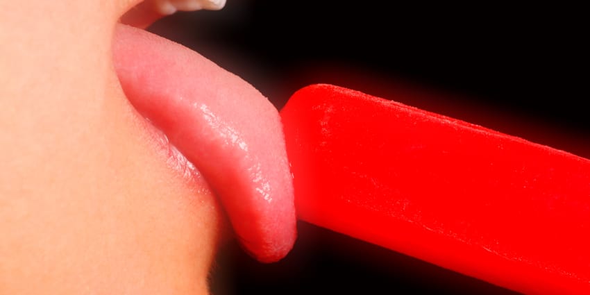 Elle tenait le bâtonnet glacé dans une main tout en soulevant son sein pour lécher les gouttelettes de cerise rouge.