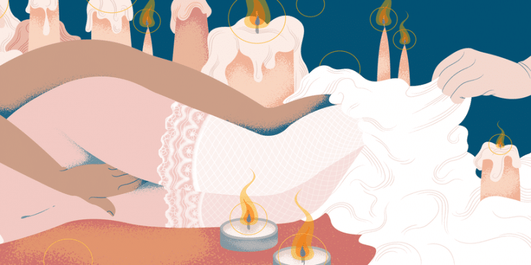Bonnie savait que Karen aimait les bougies de toutes sortes et elle la laissa s’imprégner de l’atmosphère de la pièce. Karen se dirigea vers le bout du lit et resta là, baignant dans la lueur. Bonnie passa devant elle et laissant sa main caresser le dos de Karen au passage. Le contact provoqua un frisson qui parcourut Karen en partant de son dos et qui aboutit juste au bon endroit. Bonnie se dirigea vers la fenêtre et ouvrit les rideaux pour qu’elles puissent profiter de l’orage. La pluie tombait à torrent, avec la fureur que seule la chaleur du sud peut produire.